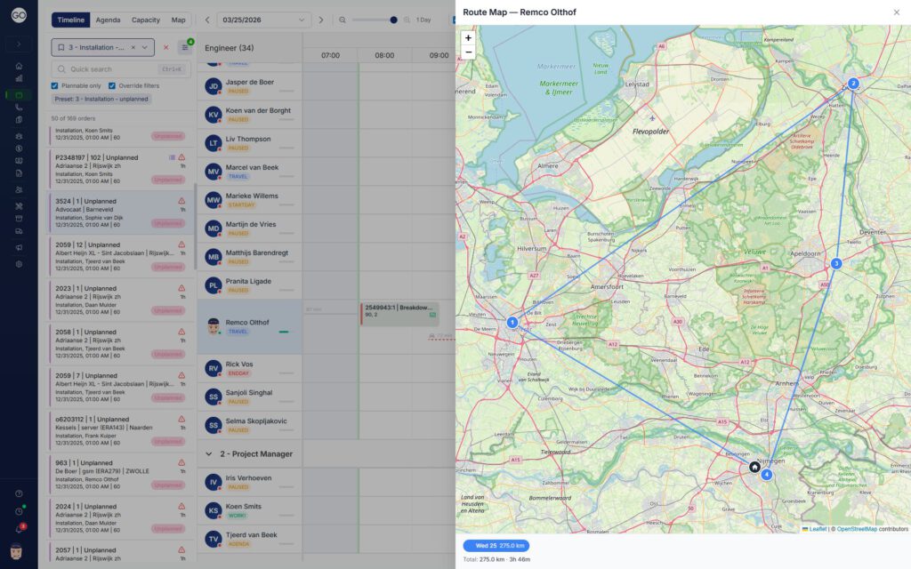 Route optimization reduces field service costs through multiple channels, with fuel savings being the most immediate benefit. Optimized routes can reduce daily travel distances by 20–30%, directly cutting fuel expenses and vehicle wear. Less driving also means reduced vehicle maintenance costs and extended fleet lifespan.